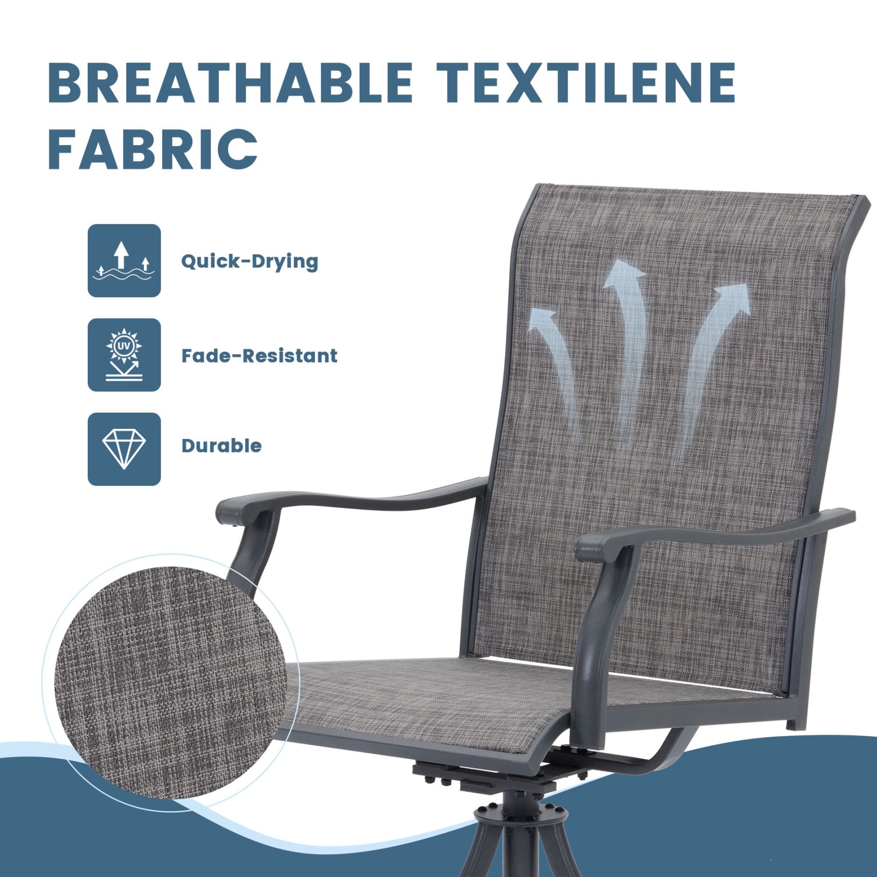 With its combination of a modern rectangular dining table and comfortable swivel armchairs, this set offers a balance of practicality and elegance, making it a standout addition to any garden, patio, or terrace.