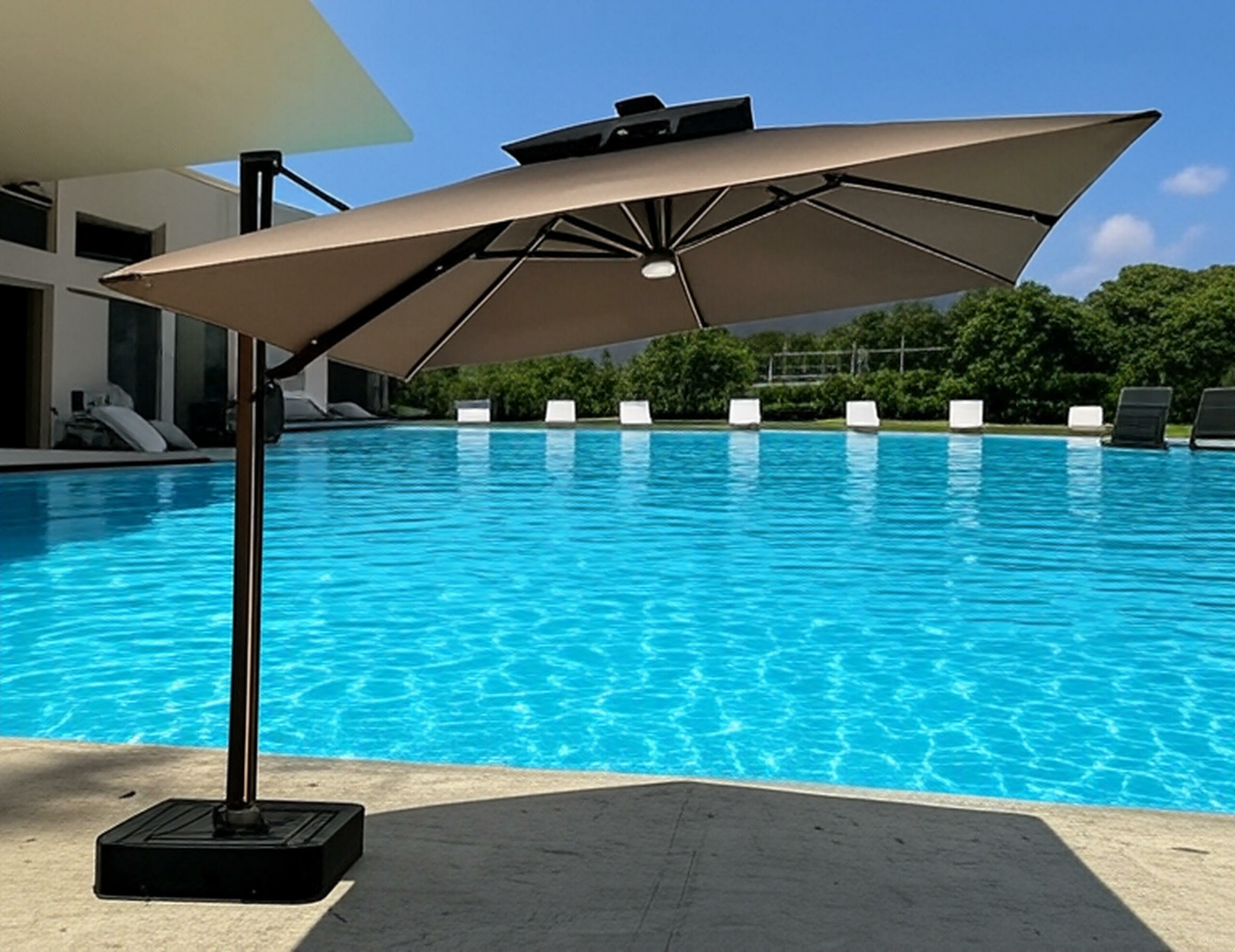 3m Aluminium Cantilever Parasol with Solar LED Lighting & 100 kg Water-Filled Base