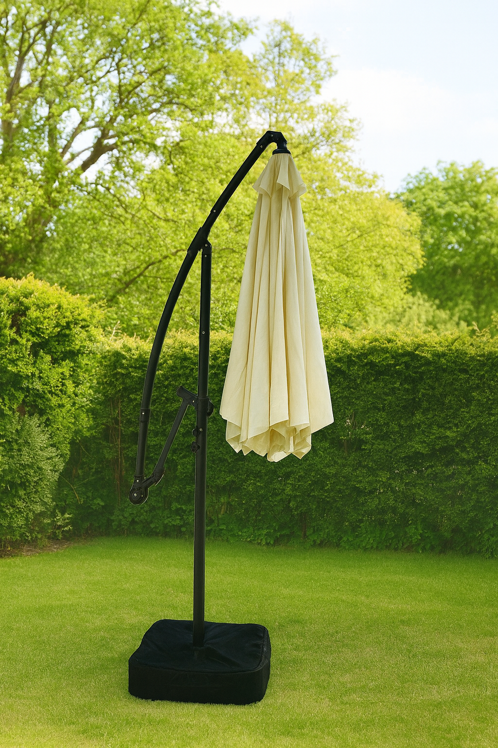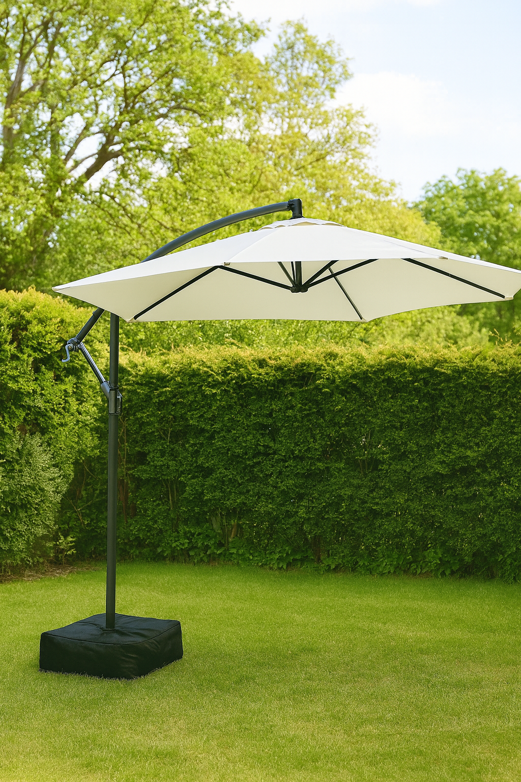 3m Cantilever Garden Parasol with Sandbag Weights – Steel Frame, 6 Ribs & UV-Resistant Canopy
