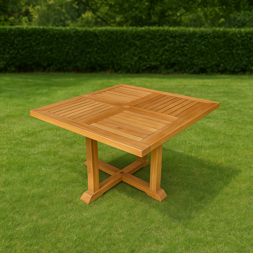This teak garden table will add a touch of elegance to any outdoor space. Crafted from high-quality teak wood, it is as durable as it is beautiful.