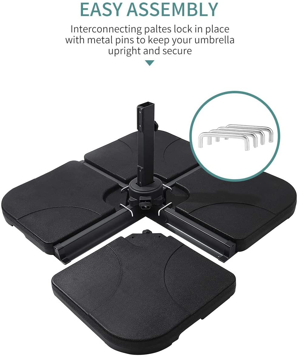 Square 4-Piece Parasol Base with Hook – Water-Filled, 60kg Heavy Duty Support