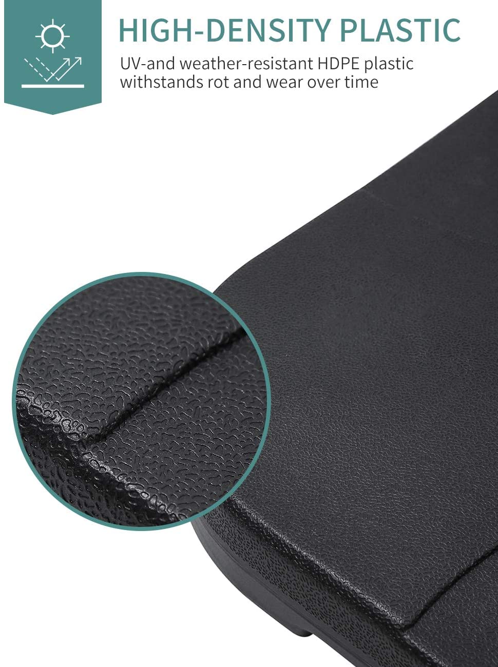 Constructed from high-quality HDPE plastic, this square parasol base is resistant to cracking, fading, and UV damage, ensuring it stays strong and reliable through every season.